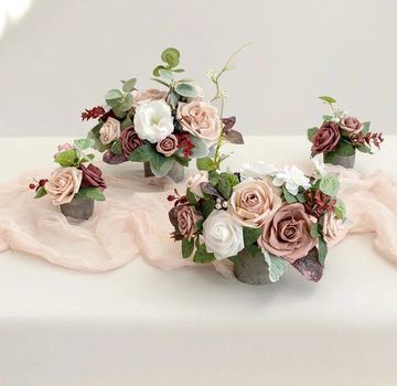 Rent premium faux florals at a much lower cost than traditional fresh flowers. Featuring several colors to mix and match.
